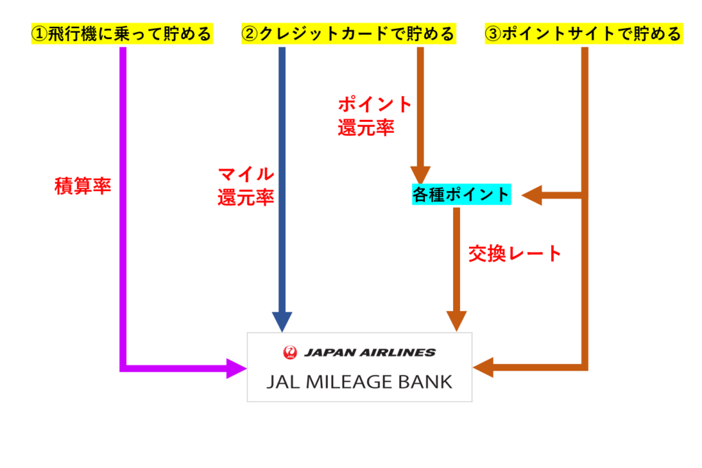 JALマイルを貯める方法は、大きく分けて以下の3つに分類されます。